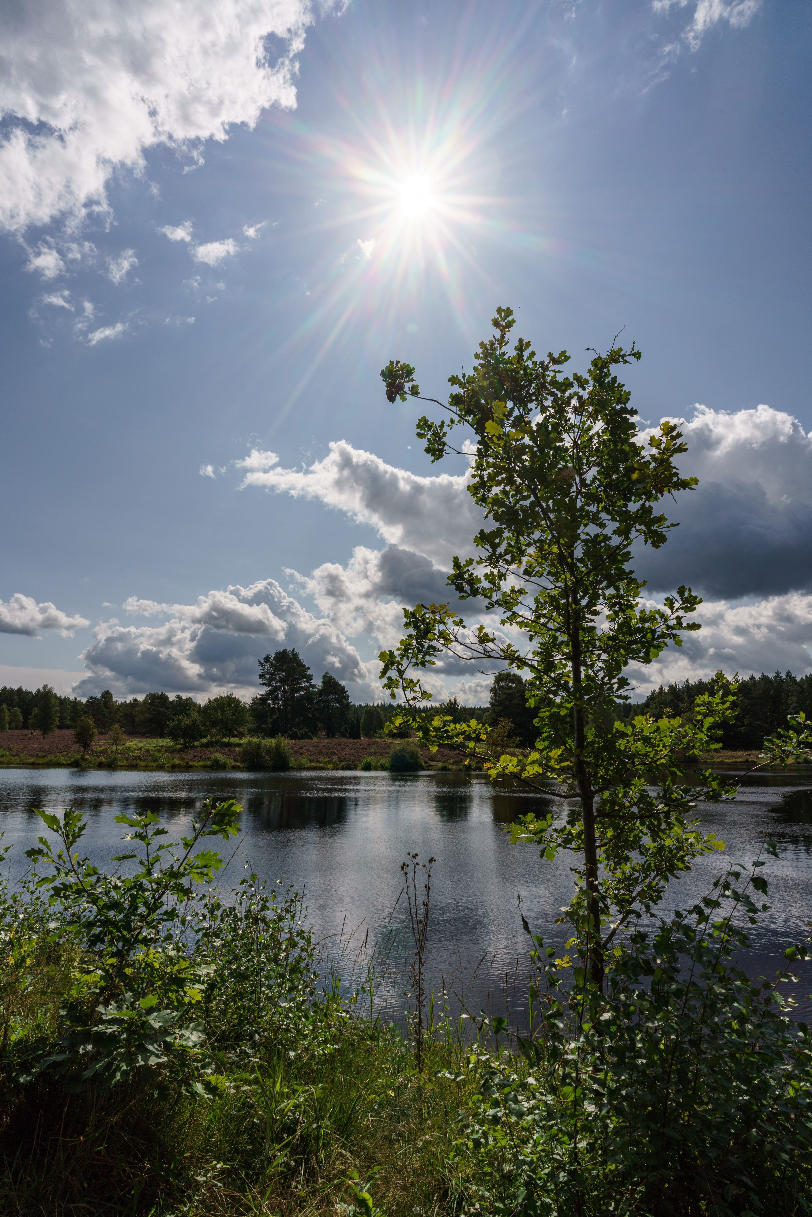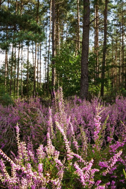 Spontan bin ich in Begleitung von drei meiner Fotofreund:Innen gegen Spätnachmittag losgefahren, und wir haben bei einem gemütlichen Rundgang um den Angelbecksteich einige schöne Motive mit der lila blühenden Heide gefunden!